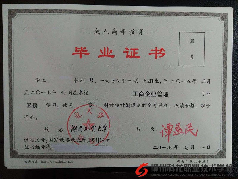 湖南工业大学毕业证样本